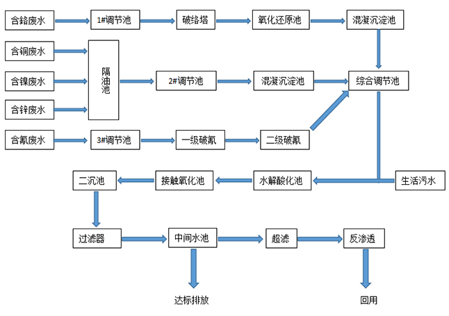 我國電鍍廢水的常規(guī)處理技術已經(jīng)比較成熟,現(xiàn)代生物法處理電鍍廢水是非常有發(fā)展前途的一項廢水處理技術,且不產(chǎn)生二次污染,關鍵是要運用新技術對其進行深度處理,進一步提高出水水質(zhì)。膜處理技術因其分離效率高,且能回收重金屬,今后必將在電鍍廢水處理中占據(jù)重要的地位。同時通過推廣清潔生產(chǎn)工藝,從電鍍生產(chǎn)的各個環(huán)節(jié)上減少排污量,也是解決電鍍廢水污染的根本方法。