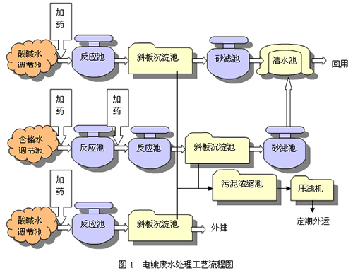 生物處理是一種處理電鍍廢水的新技術。一些微生物代謝產(chǎn)物能使廢水中的重金屬離子改變價態(tài),同時微生物菌群本身還有較強的生物絮凝、靜電吸附作用,能夠吸附金屬離子,使重金屬經(jīng)固液分離后進入菌泥餅,從而使得廢水達標排放或回用。