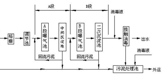 本工藝生化處理采用AB法,通過吸附、絮凝、分解和沉淀等作用,以較低的能耗取得較高的處理效率,獲得良好的出水水質(zhì)。